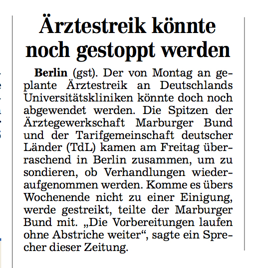 HAZ-Artikel über Ärztevollversammlung